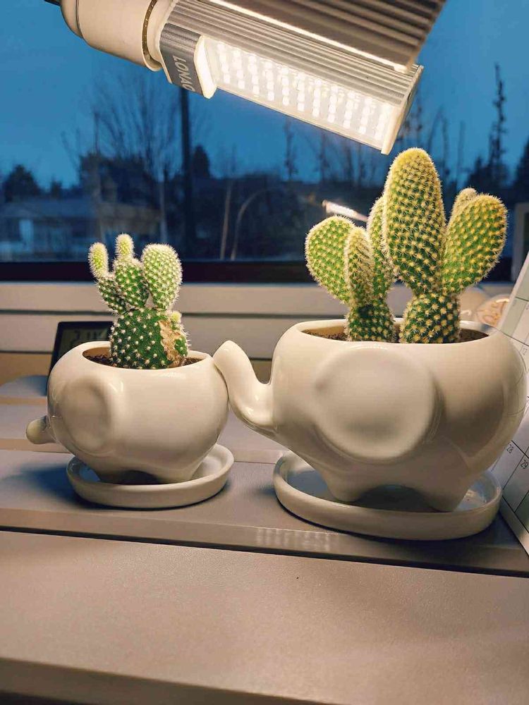 育成ライトに照らされている私のおサボちゃん達です🌵