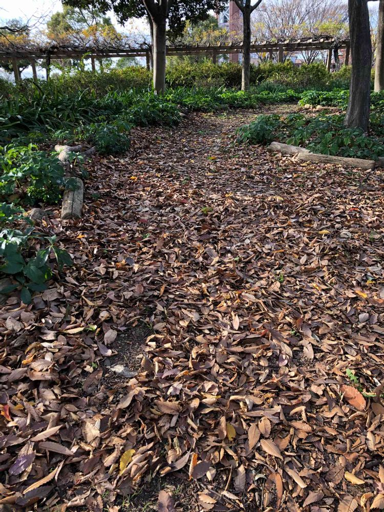 枯れ葉🍂が吹き溜まりにかたまっています。