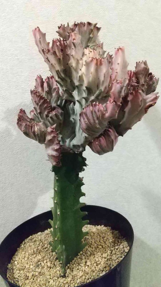 これは綴化した上に白くなったユーフォルビアのラクテアを彩雲閣に接ぎ木したものらしいですよ😁🌀