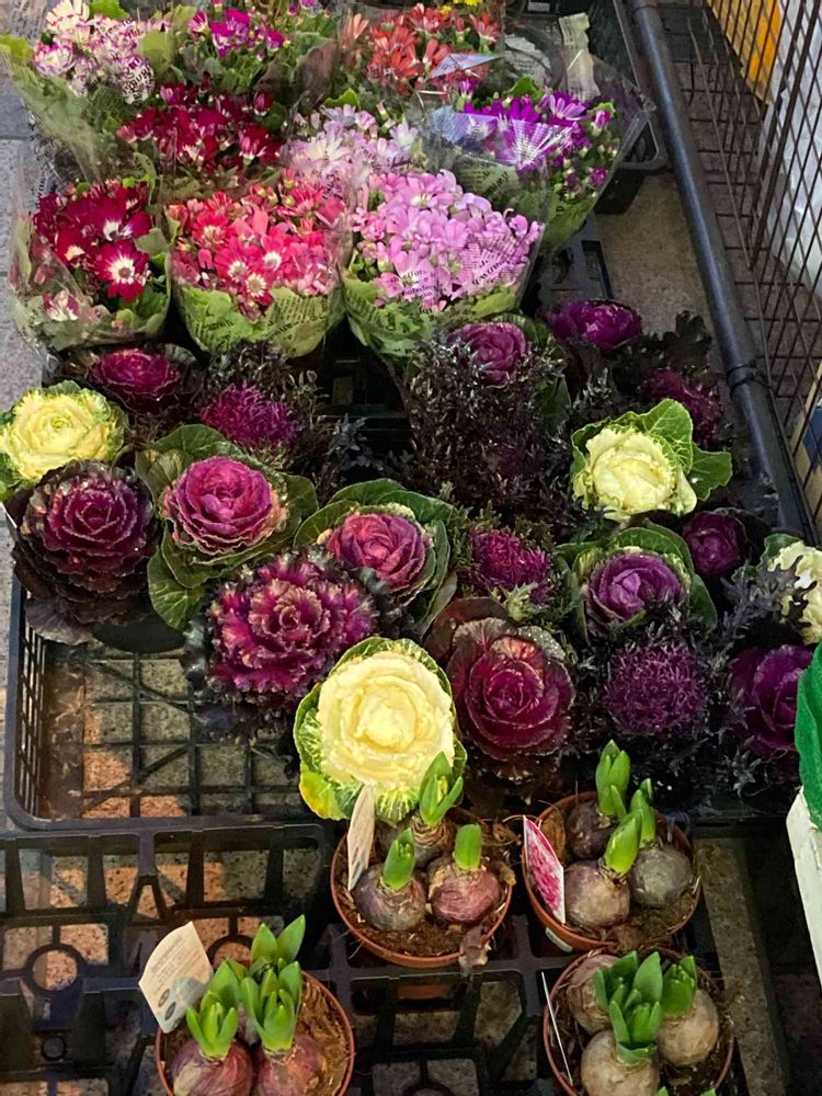 お出かけ先,ヒヤシンスの球根,葉牡丹寄せ植えの投稿画像