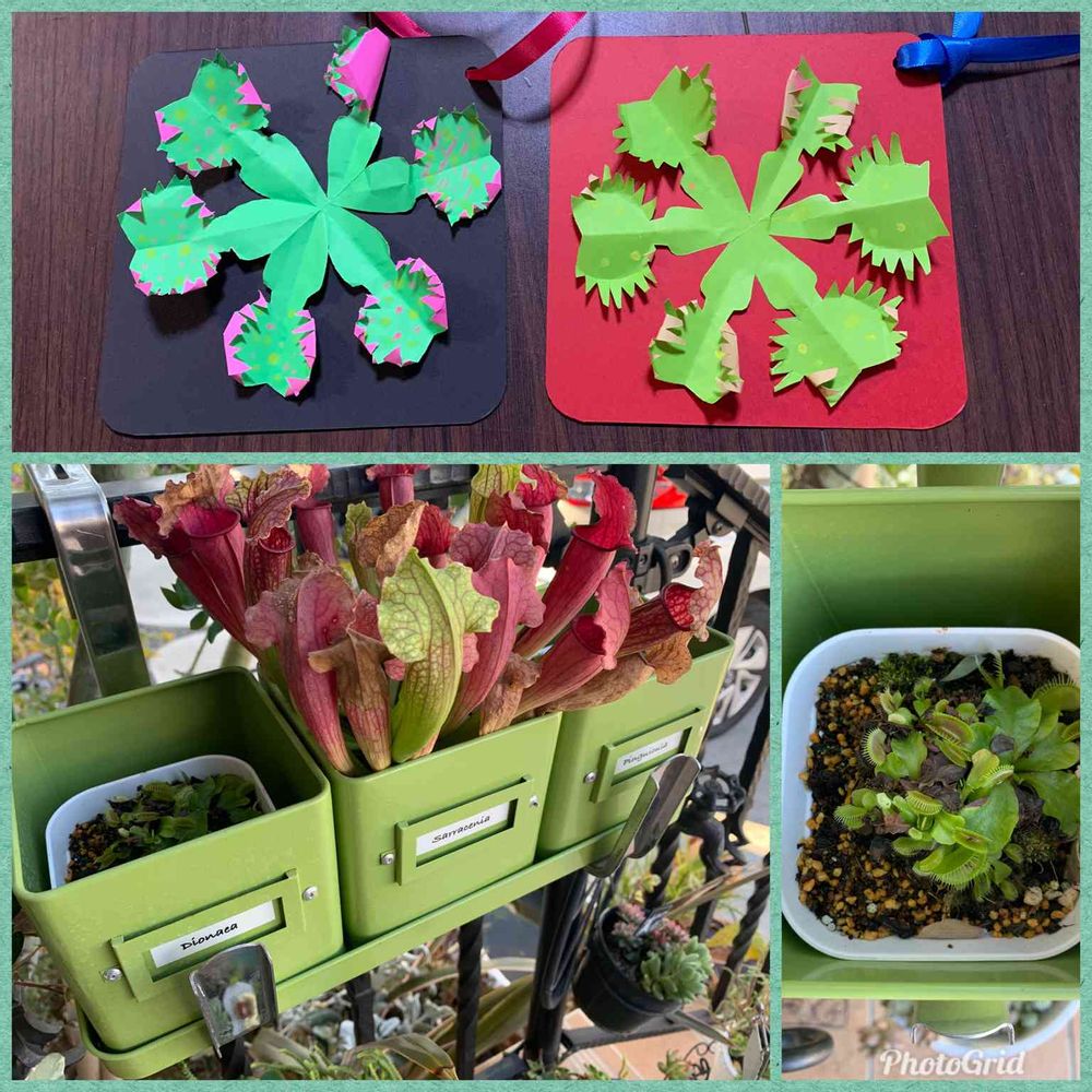 ワークショップで子どもたちがハエトリソウの切り紙を作りました。