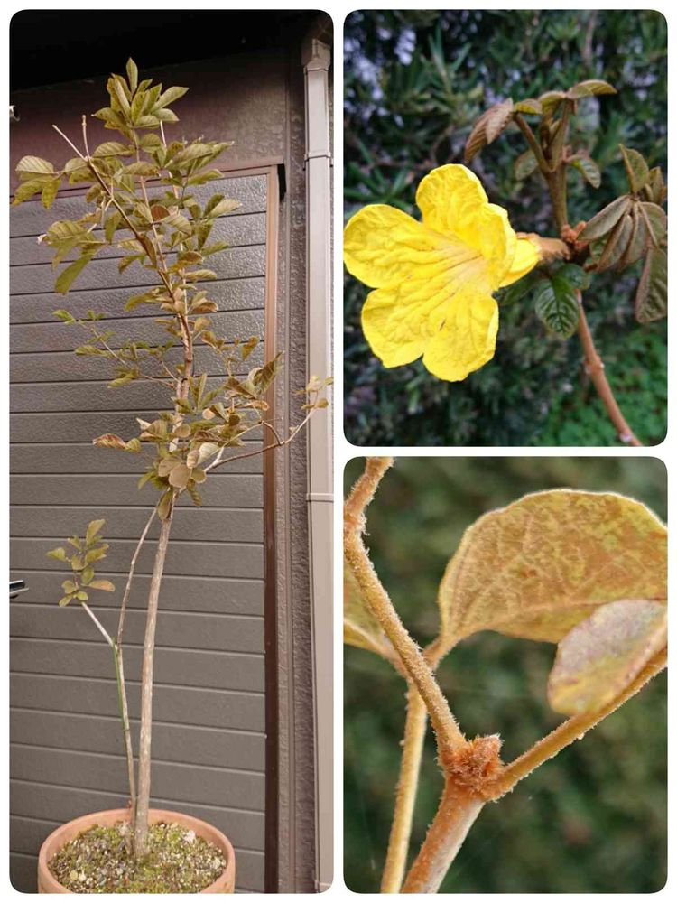 路地に植えてある黄色い花の木を見て!4~5年前にお迎え‼️去年初めて咲いてくれましたが.……1週間前の霜で元気がなくなってしまいました!😣来年咲いてくれるかしら❔