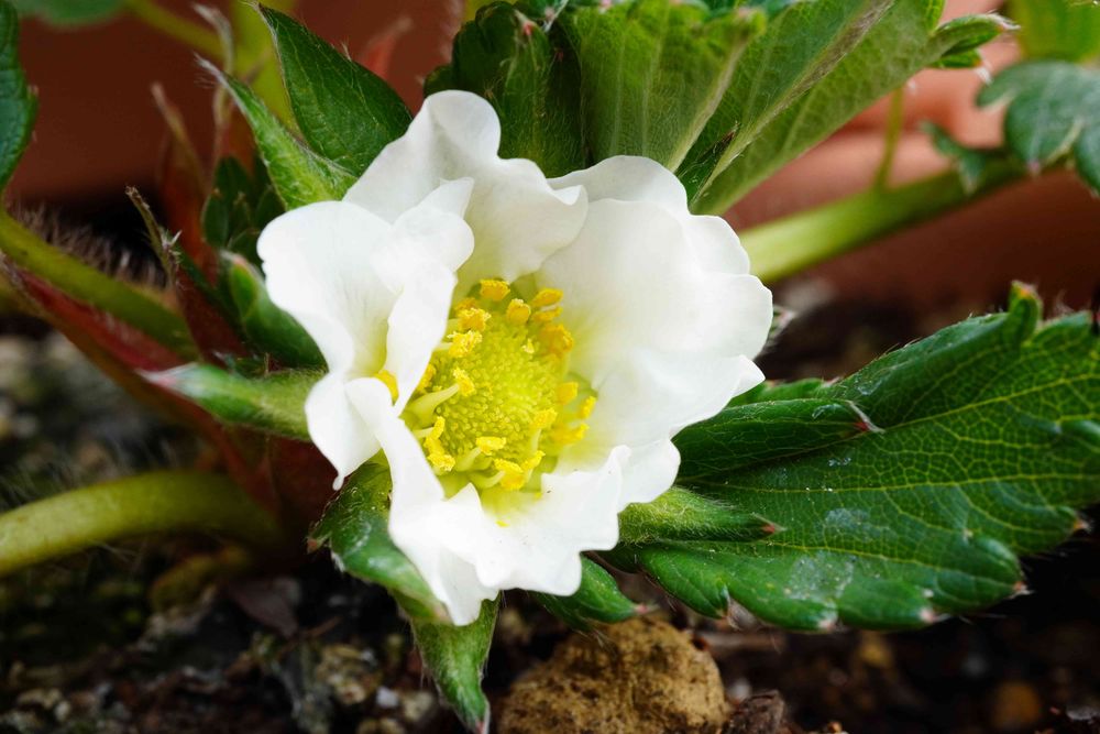 こんな季節に咲いてしまった苺のお花、越後姫🍓