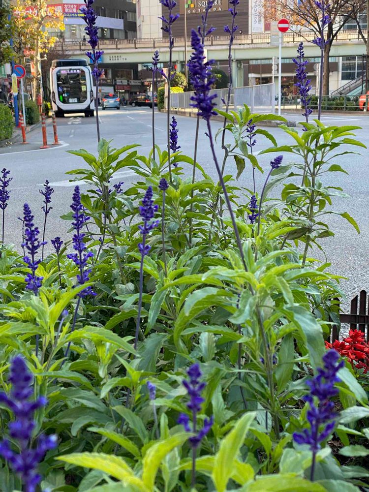ボランティア、町内会による駅前の花壇。すっかり更地状態で、例年のハボタンもなく、寂しい限り。一画のみセージが僅かに奮闘中でした。
