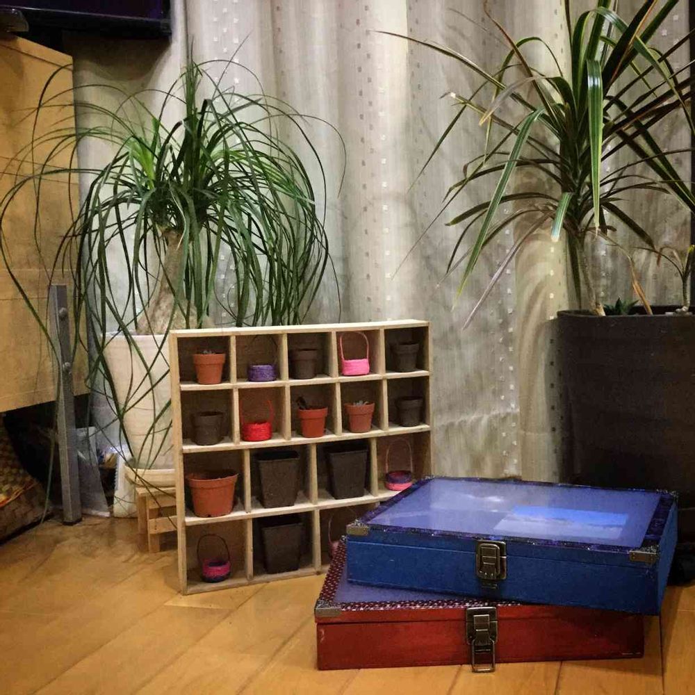ちっちゃい植木鉢入れる棚、母の夏休みの工作(未塗装)。
