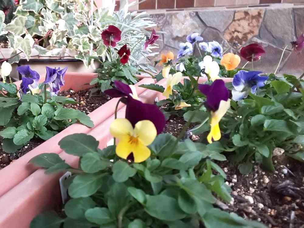 球根の上に植えたビオラ達が色とりどり💜💛💙🧡❤️元気に咲いてくれて🎶✨可愛い☺️💕