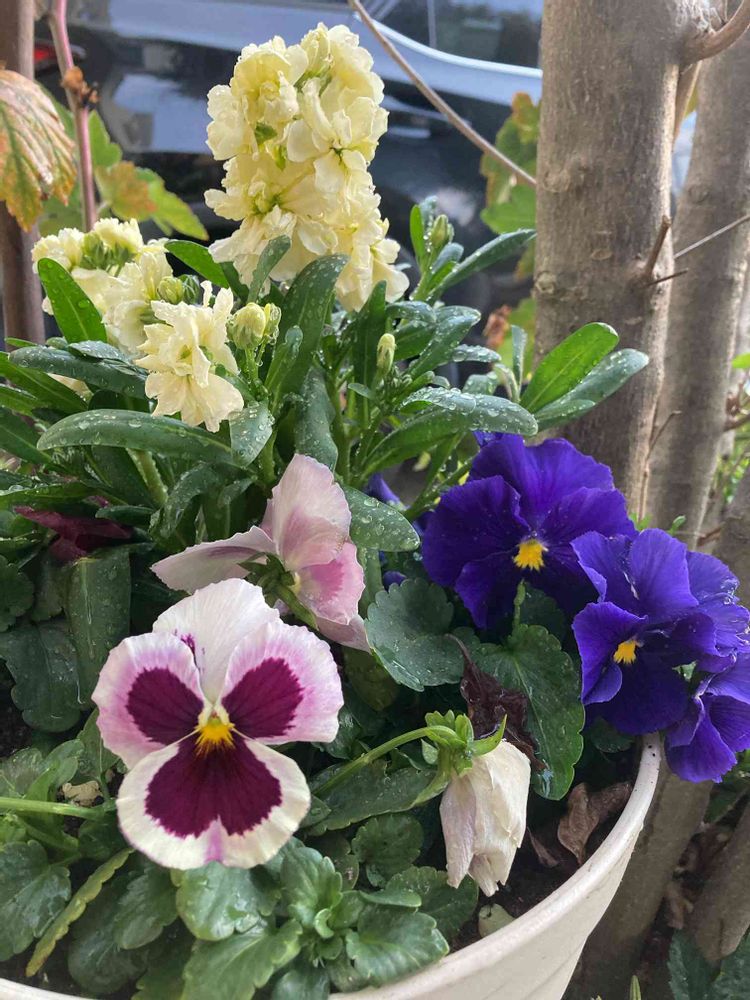 パンジーとビオラの寄せ植えしました。