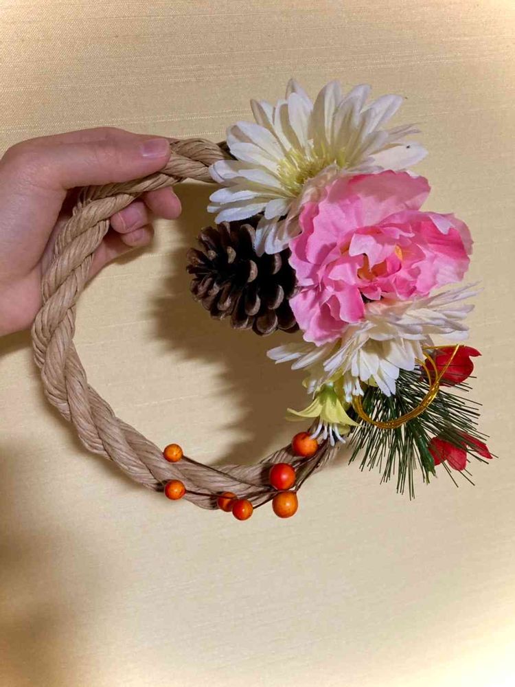 ありあわせしめ縄です。しめ縄本体は私が作り、飾りは、娘が家にあった物をかき集めてつけました🎍