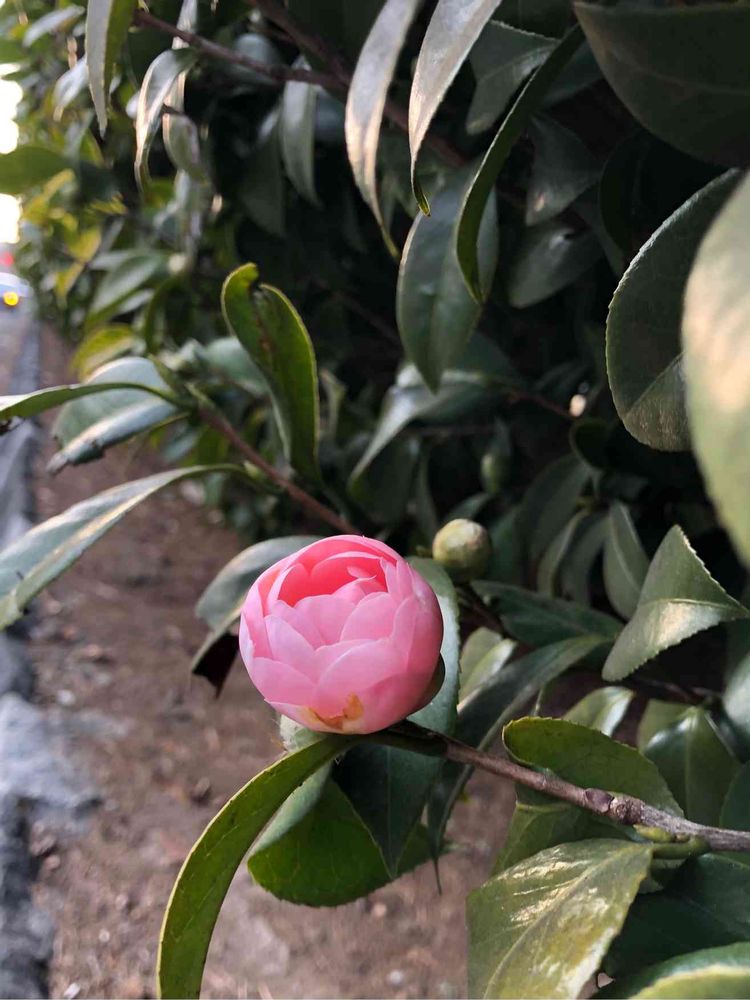 団地の垣根の乙女椿💗💗🌿