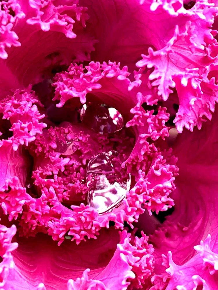 2020-12-30 雨あがり陽が出て葉ボタンにコロコロの雨粒💕😆未だ未だ 上手く撮れません📸可愛くて ✨💦✨キレイなのになぁ〜