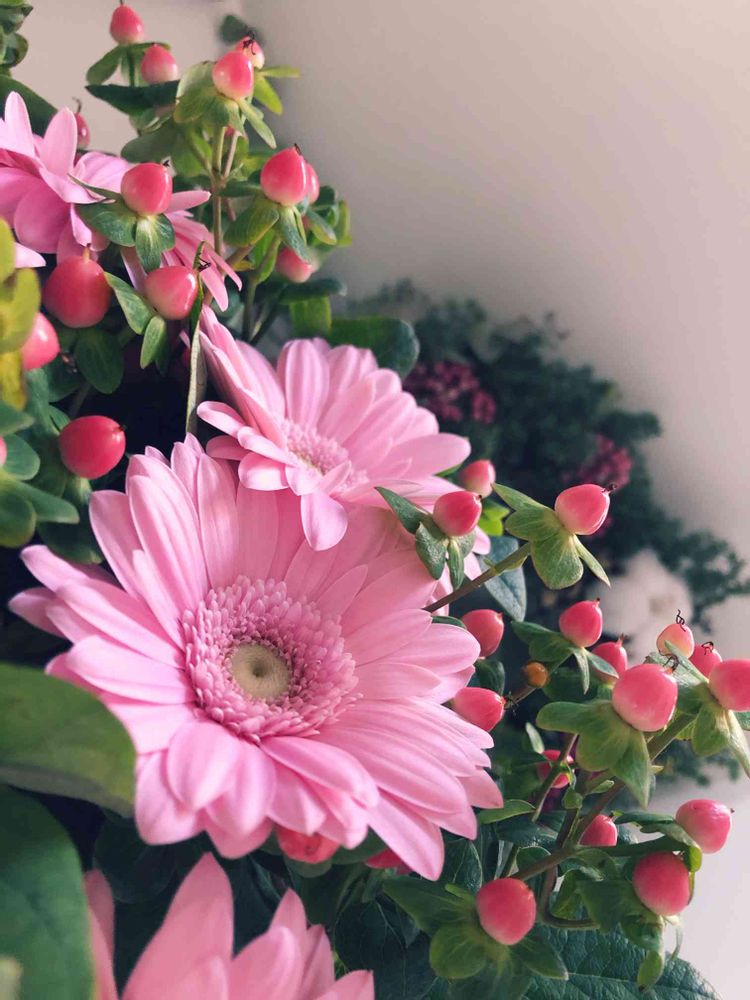 玄関,ヒペリカム キャンディ-フレア,ガーベラ ピンクの投稿画像