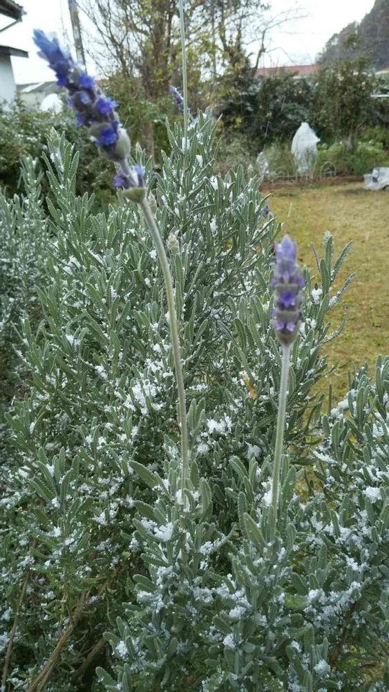 庭に咲いているラベンダーも葉っぱに雪が積もり寒そうでした。😁