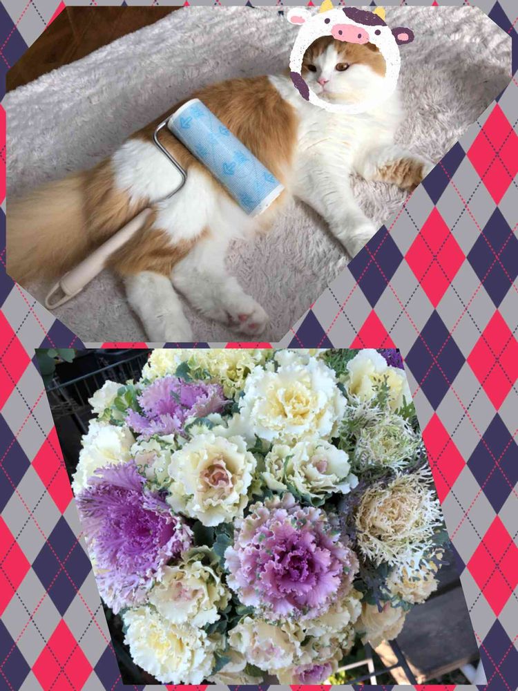ブラッシングの後 少し絨毯コロコロしてから 心の体をします😽😼