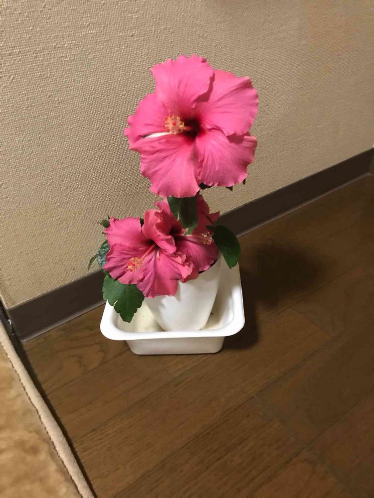 花もさることながら、鍋に使った豆腐の容器かなぁ〜なんて… 😅