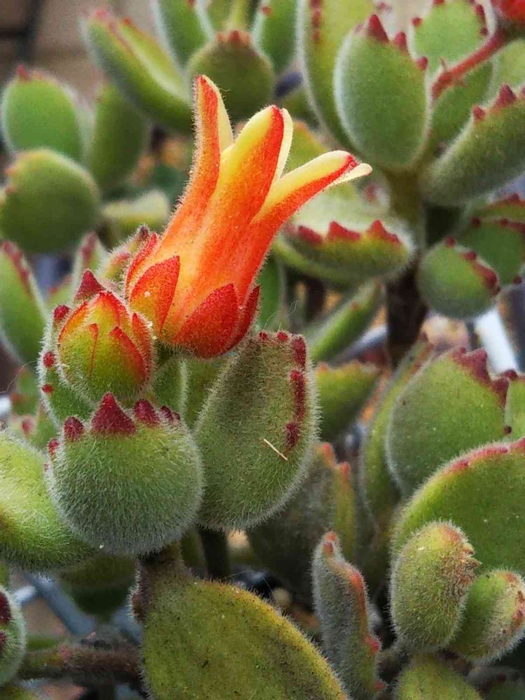 寒いのに 続々と🐙さんウインナー形の お花さん🏵️を咲かせる コチレドン・熊童子さん🐻