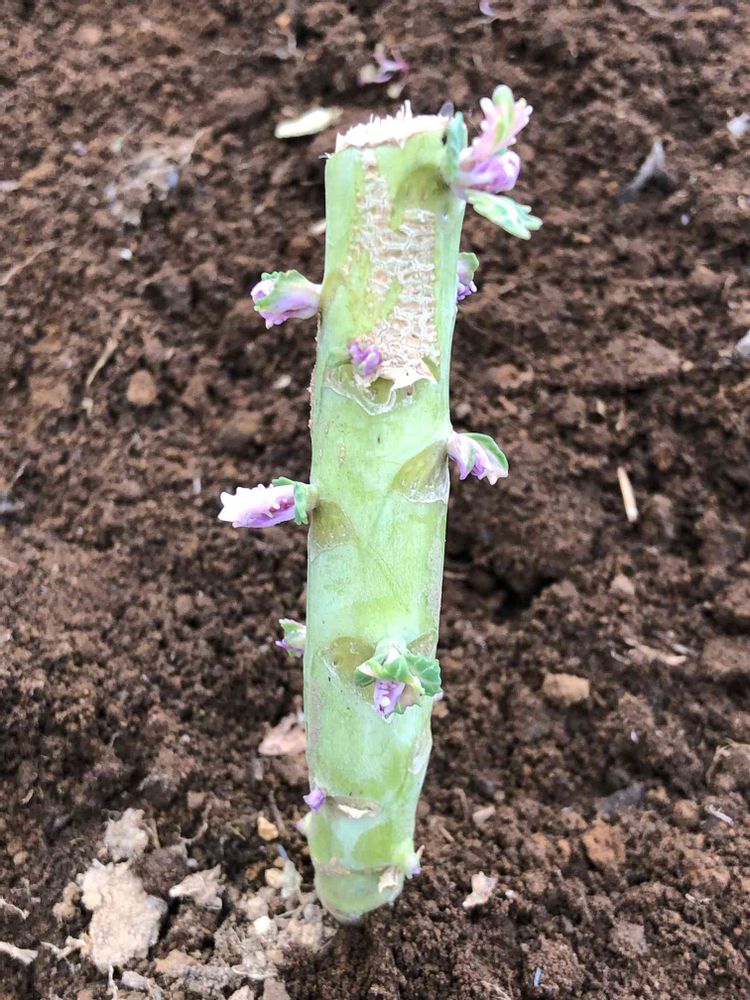 先日 2年ものの踊り葉牡丹を切ってお供えにしました。鉢植えでした。 5cm位しか茎は残らなかったので、引き抜いて捨てようとしたのです。