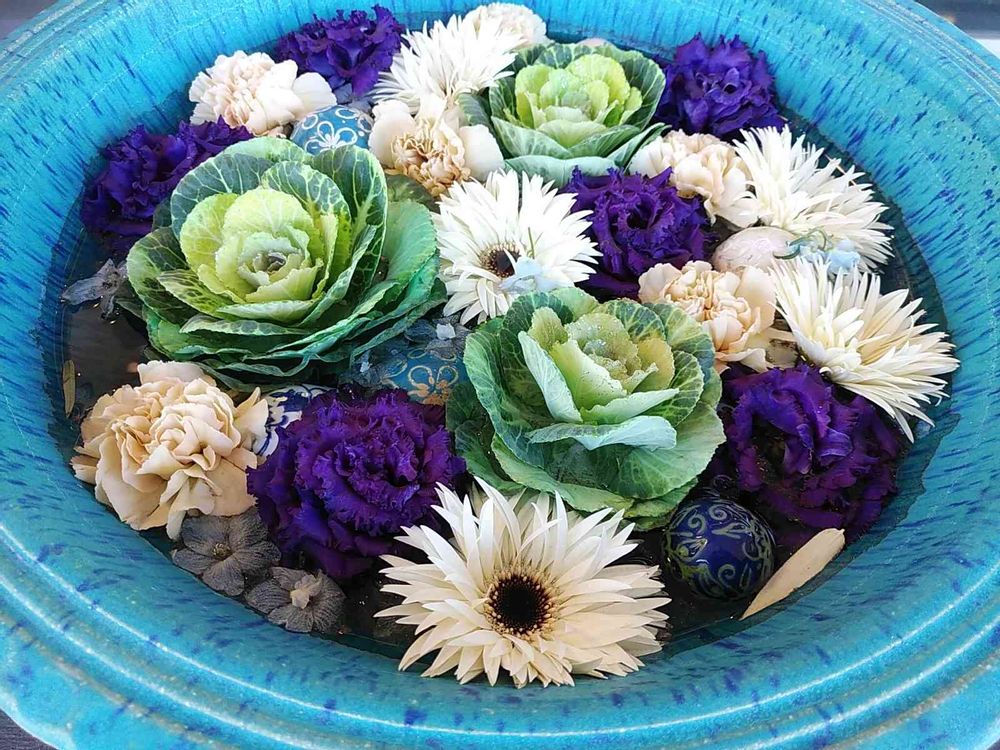 葉牡丹を花手水に入れちゃうアイデア💡