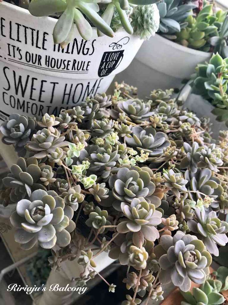 なーんと、この子持ち蓮華は、この前投稿した鉢とは違う子持ち蓮華2号です😆こちらの方がお花感が強く素晴らしい😍✌️1号の方は色が、青みがかっていて手離せず😭渋谷園芸さんでずーっと、手に取ったり、置いてみたり、たたずんでいたのですが、結局1号2号両方我が家にやってきました😁
