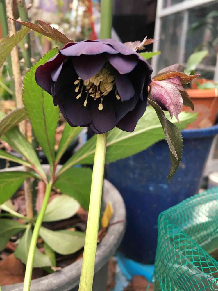我が家のクリスマス・ローズ part2 クロ系をもう一株(品種)あります。こちらは、鉢植えのままです。植え替えてもそんなに大きな鉢にしてないため、花芽は一つかな?