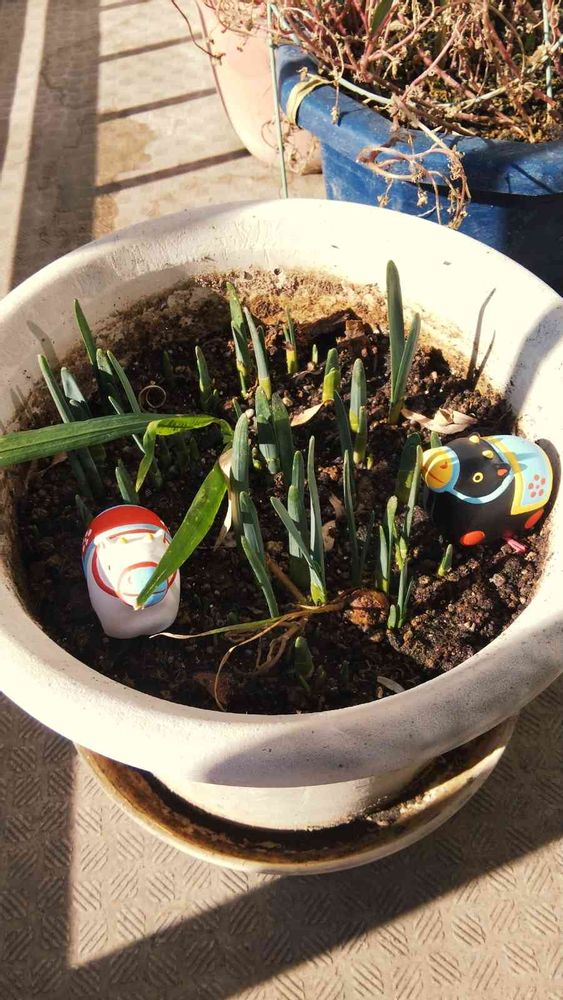 新年にふさわしい花🌷らしいですが、まだ小さいので、クワイ風に「芽が出るということで、かわいい🎀牛🐮さんとコラボしてもらいました。(撮影📷️後牛🐮さんはおうち🏡に帰りました。ぬれるのはイヤだそうで)