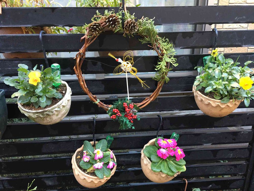 花咲ジジ子さんのフェンス,正月リース, プリムラの投稿画像
