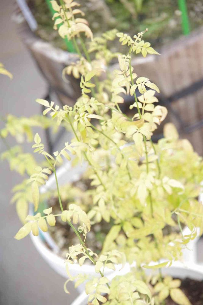 今回の寒波で、ジャスミン フィオナサンライズの葉がきれいに色づいてきました。カメラでは伝わりにくいですが、綺麗な黄色です