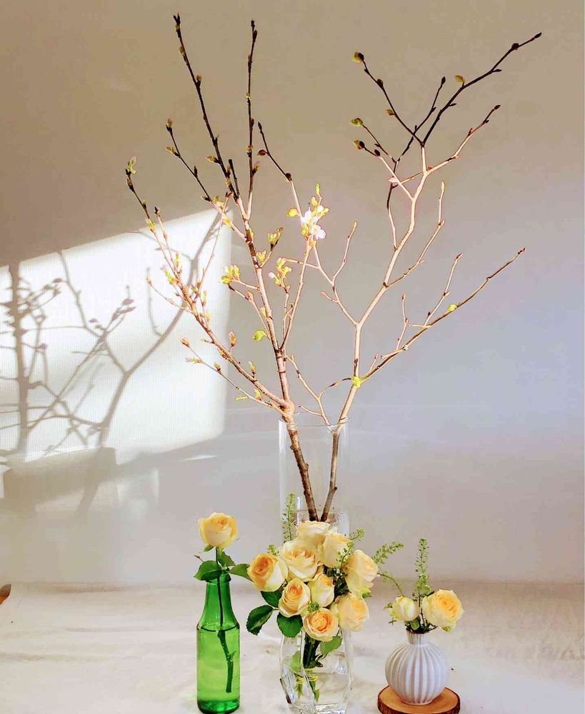 後ろの枝物、咲いたり芽吹いたりで、目が離せません🤩🤩🤩
