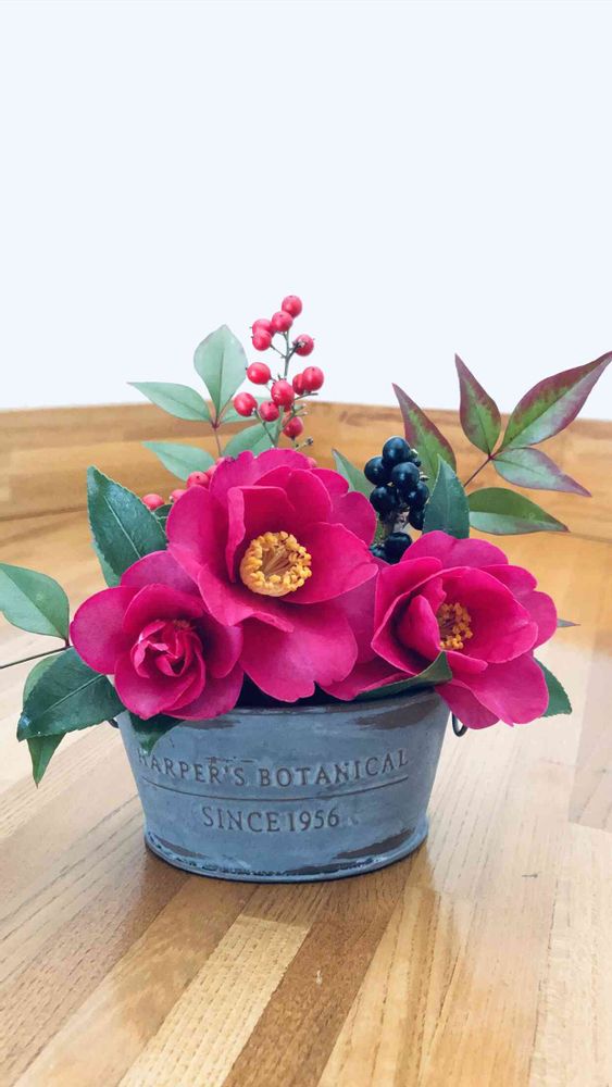 山茶花も器を変えるとおしゃれに見えます(^-^)