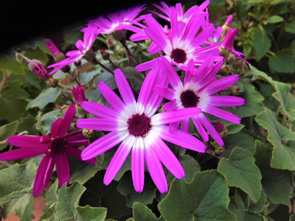 お散歩途中。「サイネリア」が綺麗に咲いていました。 パチリ