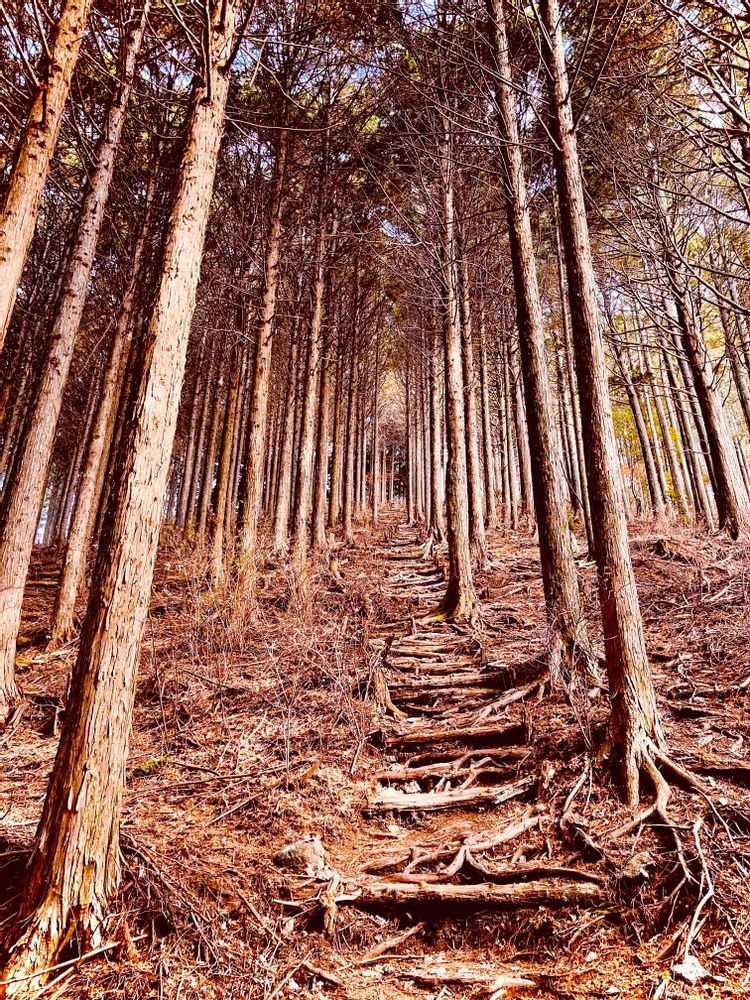 木の根っこが這って階段みたいですね。この階段を登りきったらどんな風景に出会えるんでしょう⁉️