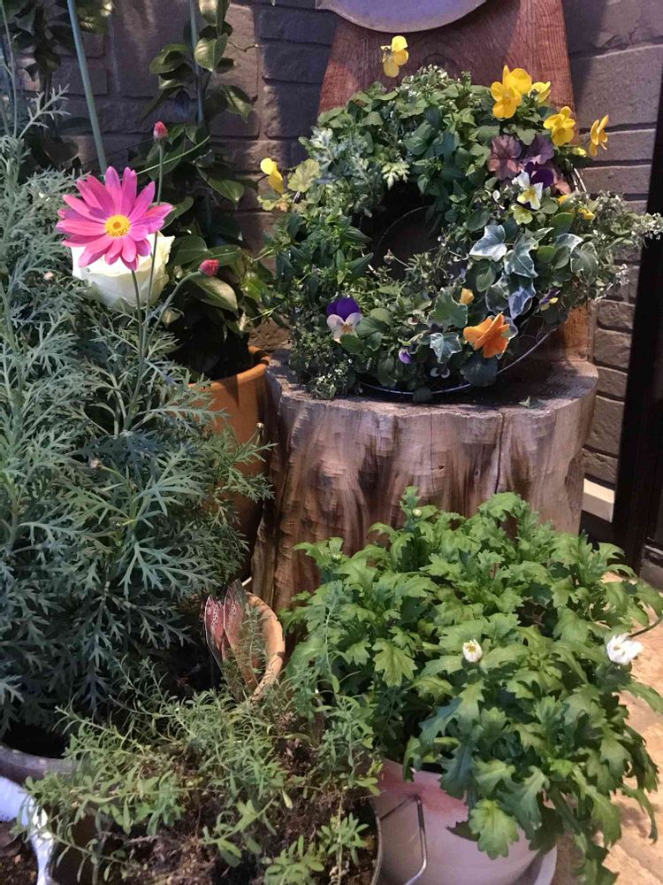 YouTubeを参考にしたのは3つの苗の根をほぐし 絡み合う様に組み合わせる方法で 花だけでなく葉物をうまく取り入れてましたよ♪