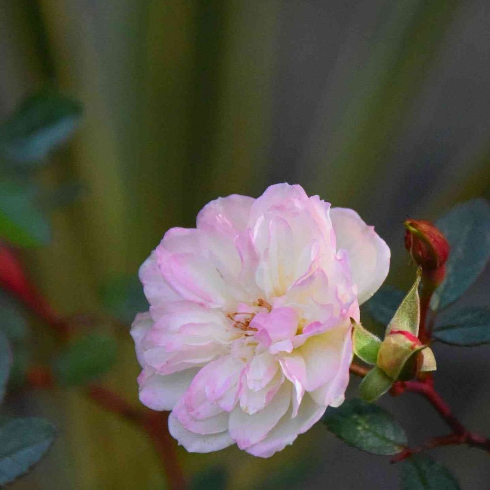 【研究学園の花々】2020年12月29日、研究学園駅前、わだ家の花壇に清楚なミニバラ「グリーンアイス」が咲いていました!