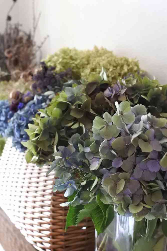 紫陽花はドライにすると味が出て素敵ですよね😃✨うちの古めかしい玄関でさえも、籠や花瓶にぶちこんだだけでおしゃれっぽく見せてくれる有能っぷり(笑)
