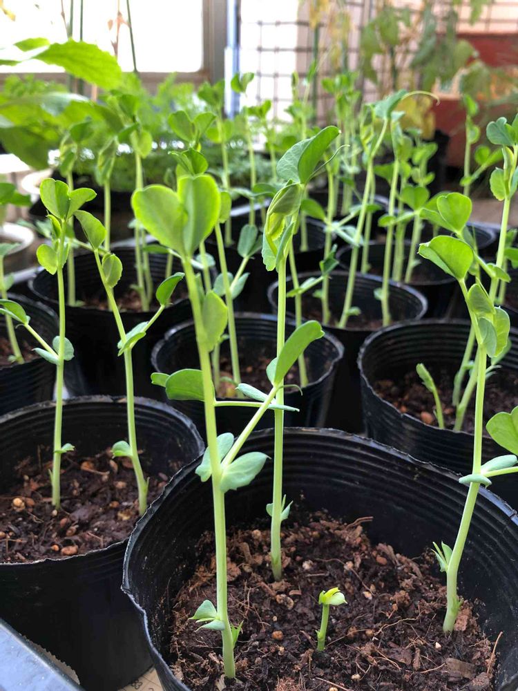 10日前に種を蒔いてお部屋で発芽させたスナップエンドウ。今日からベランダに出してみました。夜に屋内に入れるか今悩み中です。