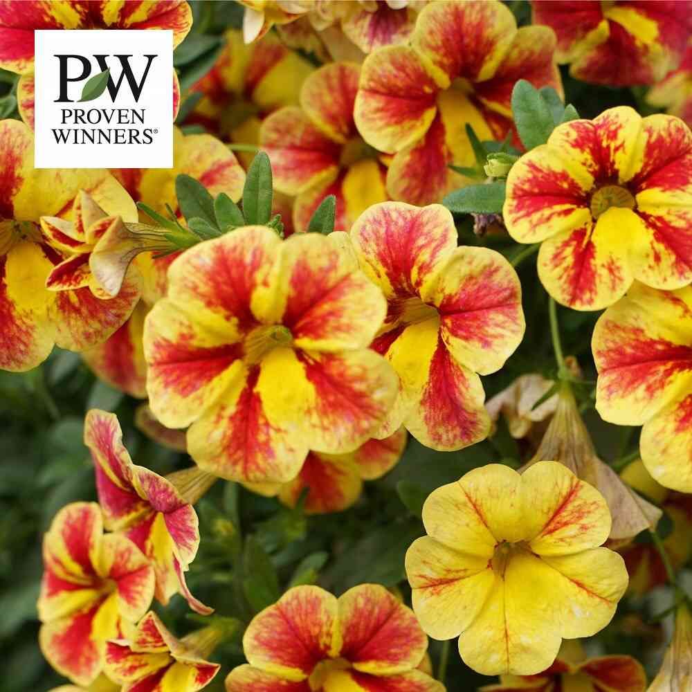 カリブラコアに、黄地に赤色のクレヨンで描いたような模様のスーパーベル