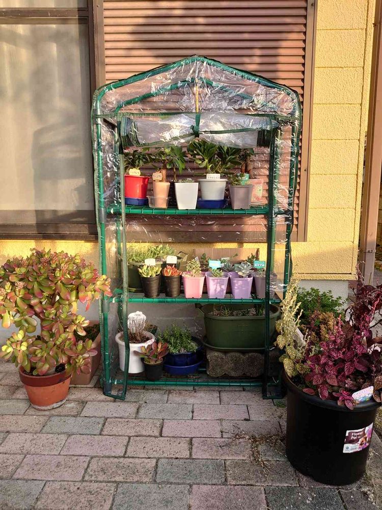 さん、コメントありがとうございます💕大きさも適度で、意外としっかりしています。前開きファスナー付きで開閉するのも便利です😊うちが、購入したものは3段ラックで、2段ラックとか、大型のもいろいろあったみたいです。昨日こちらは天気がすごく良かったから、前を解放して日光をたくさん浴びれるだけでなく風通しも良くできるようにしてました😊なにぶん多肉初心者なので、冬の管理の仕方や室内管理が適しているのか、外でも大丈夫なのかどうか、試行錯誤の毎日ですが、勉強しながら楽しんでいます。