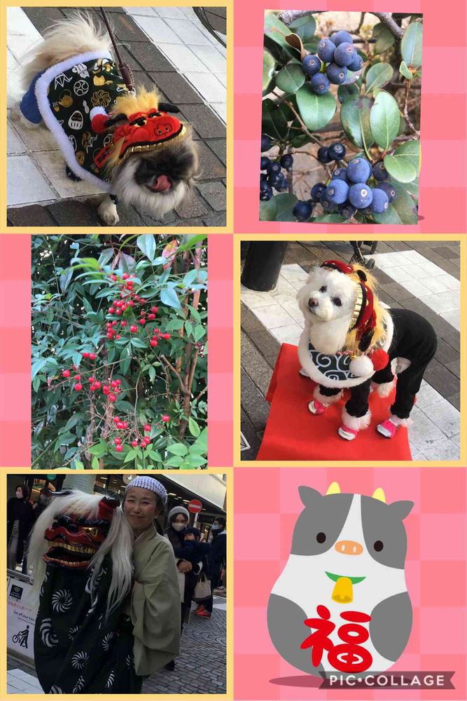 昨日、商店街に珍しく獅子舞が来てました。何かと一緒に写真撮っているので見たら、ワンコと撮ってました。最近のペット達はオシャレですね。飼い主の趣味ですが。赤い台にじっとさせるので大変みたいでした。お出掛け先で見た、黒い実はシャリンバイ、赤い実は南天です。