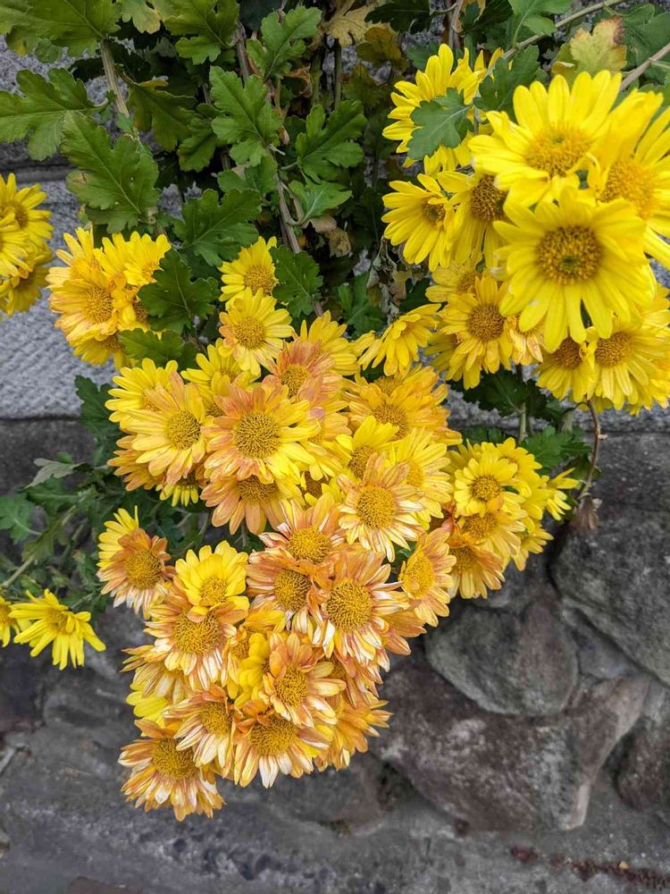 民家の庭先から溢れ出たビタミンカラーの🌻菊の花🌻
