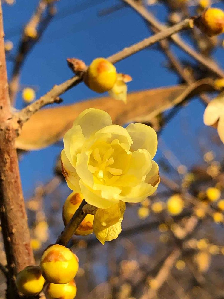 福寿蝋梅は花びらと花の芯が同じ色をしています。