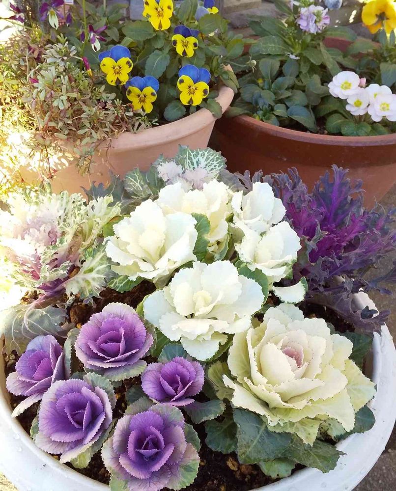 気に入った葉牡丹を度々買い集めては、何と一緒に寄せ植えしようか悩んだ末、葉牡丹だけを集めてみました😊