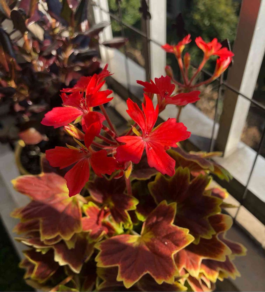 もみじ葉ゼラニウムは葉の鑑賞がメインらしいですが、お花も真っ赤なもみじのようですごくかわいいです💕