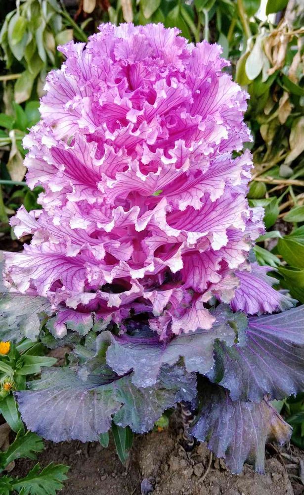 ピンク系のフリルのような花びらが重なり綺麗な葉牡丹✨