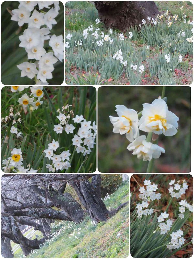 川原の土手の斜面にところどころに2種類のスイセンが咲いていました💕桜の木は、枝だけでまわりなにもない中見えてきたお花たちが、春を思わせとても嬉しくなりました🤗🎶