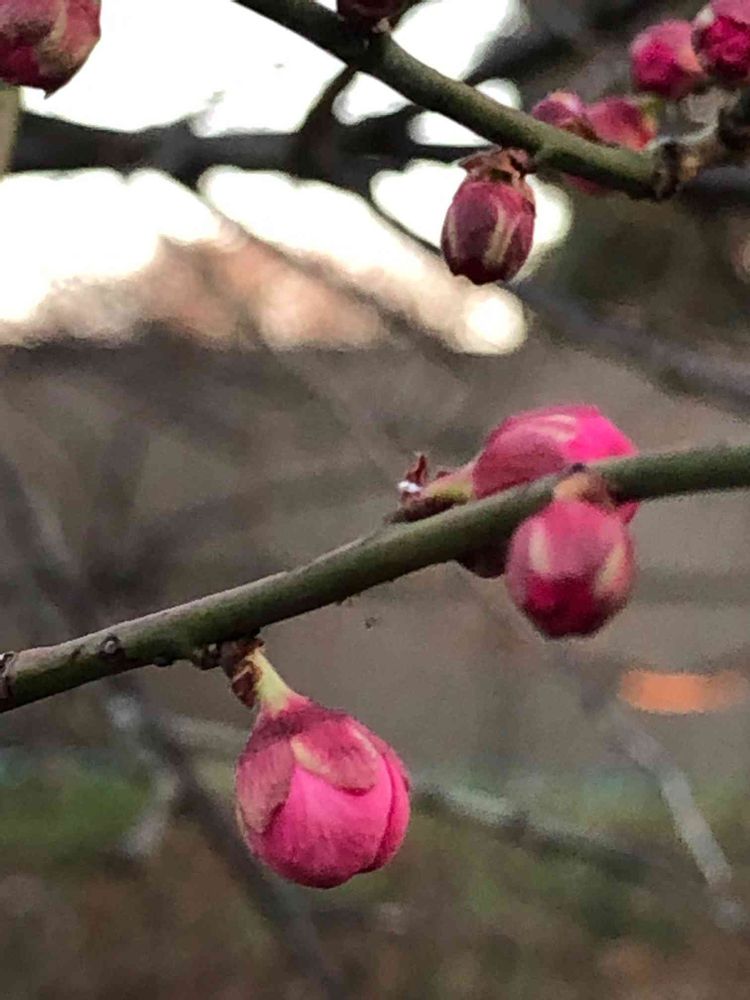 植物園前の駐車場近くの梅林には、寒紅梅も普通の梅もあるよね😉