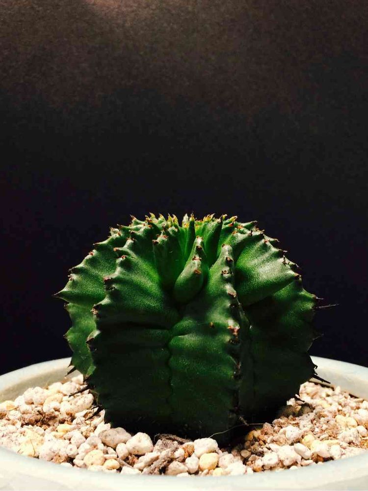 本日の新入り、ユーフォルビア ポリゴナ。今はまん丸だけど、いずれは円柱状になるらしい。