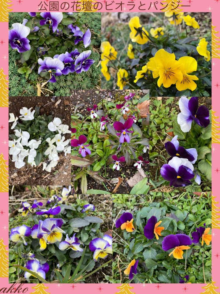 それらの花壇のパンジーやビオラは色とりどりです‼️