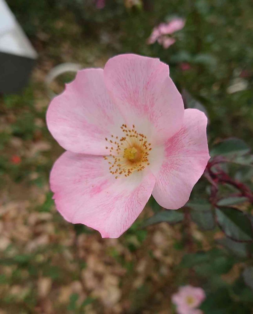 ピンクの一重咲きの薔薇、可愛いです💕