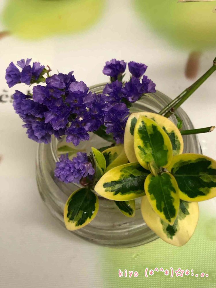切り花買った時に何時もサービスで1輪いただいています。たまたまスターチースが続きました💜