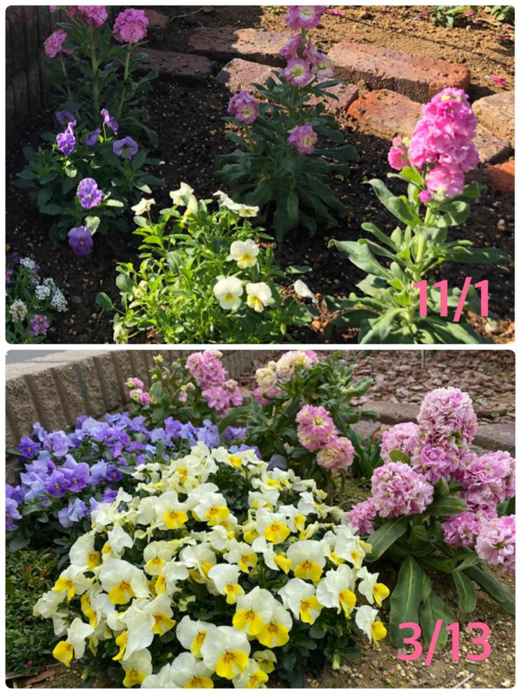 一昨年の冬から去年の春の庭植えビオラの様子です🌼✨