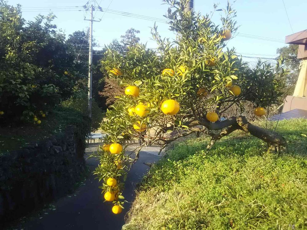 20年位前の大型台風で身体を横倒しにされながらも、毎年実をつけてくれます😊🍊🌈